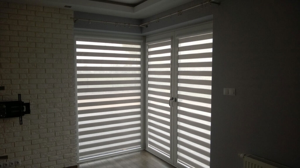 Rolety dzień noc w kasecie z prowadnicami to połączenie właściwości klasycznej rolety z możliwością regulacji dostępu światła. Stosowana w produkcji dwuwarstwowa tkanina z kolekcji BAHAMA składa się z naprzemiennych pasów – przezroczystych i zaciemniających. Nałożenie dwóch warstw tkaniny i przesuwanie ich względem siebie daje możliwość regulacji stopnia nasłonecznienia/ zaciemnienia pomieszczenia. Roletę można też całkowicie zwinąć.